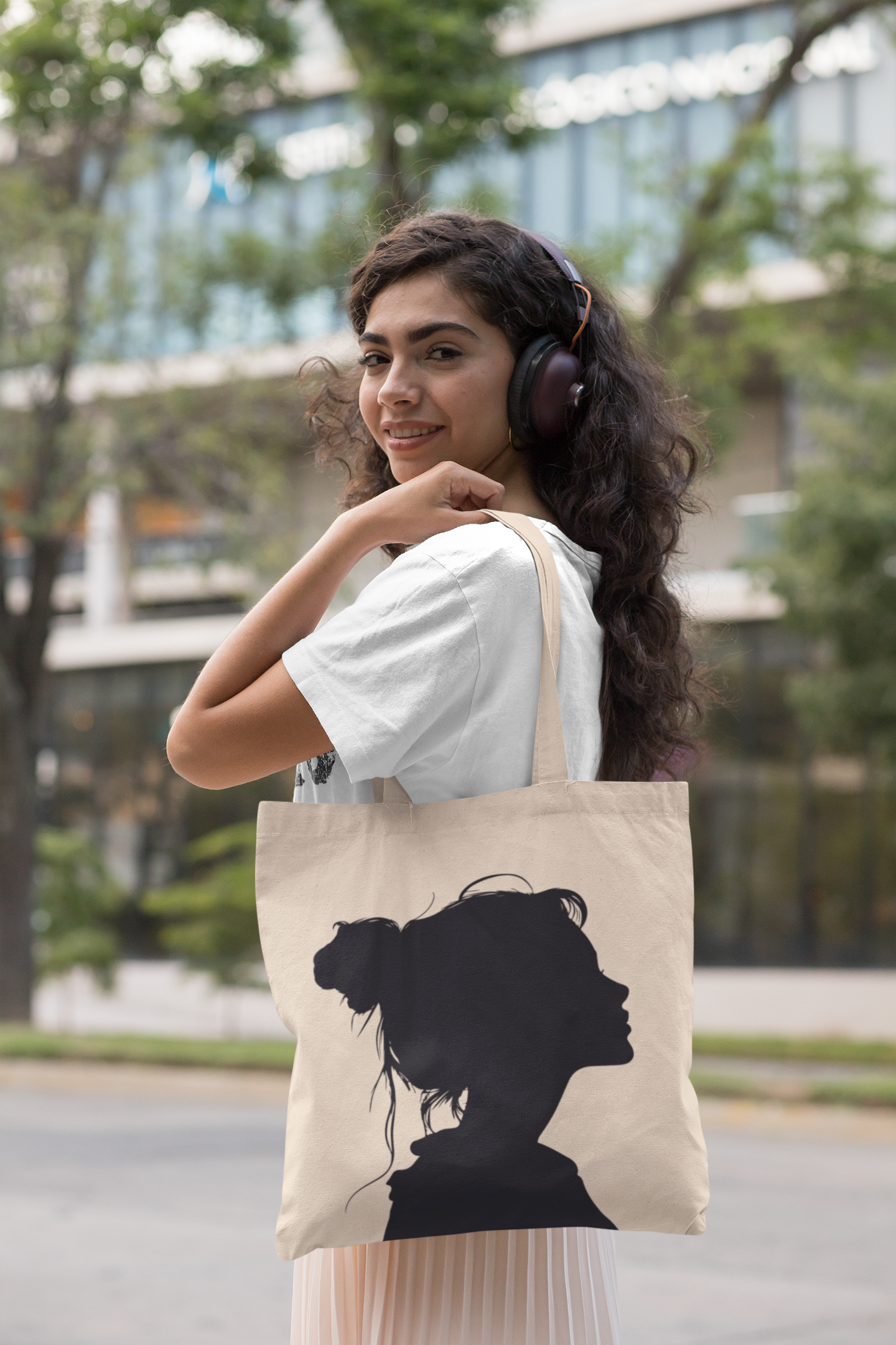 Minimal, moody, and beautifully bold—this tote captures the mystery and depth of femininity with a black silhouette of a woman in profile. Ideal for art lovers and style seekers who believe less is more.